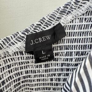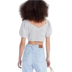 J.Crew Puff-Sleeve Organic Cotton Cropped Top Striped White Blue Beachy Womens L