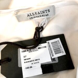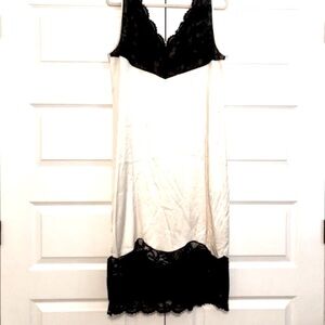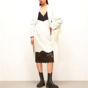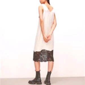 NWT ALL SAINTS Celeste Cream Satin Black Lace Boho Midi Shift Dress 10 MSRP $249