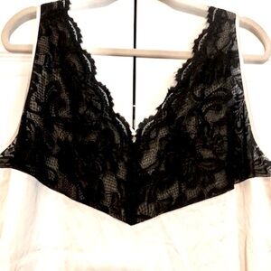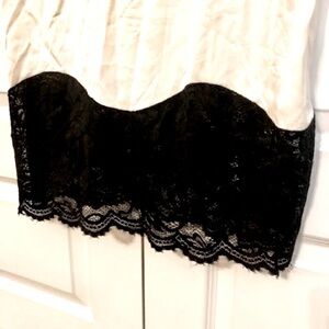 Lace trim at front bodice and around the hemline