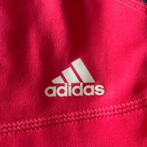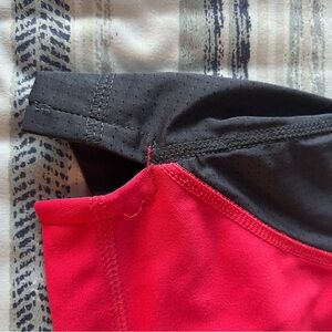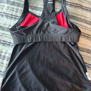 Sleek Adidas tank top in black and gray. Ideal for active wear. Bra support. Colour is more of a pink than red.