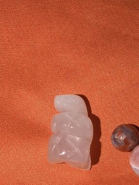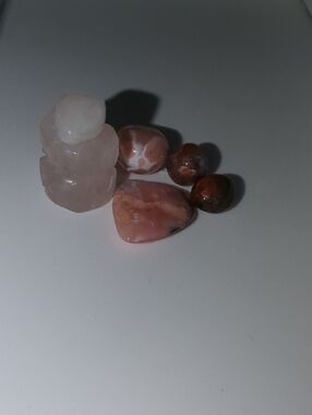 Rose Quartz Carving & Tumbled Stones - Pink, Rose, White & Brown