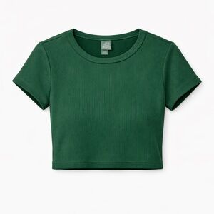 wild fable Dark Green Ribbed Crop Tee - Short Sleeve