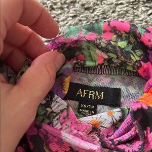 Near perfect condition afrm mesh top. Long sleeve turtleneck. “Bloom with grace” print. Stretch. XS. Smoke & cat free. No defects or stains.