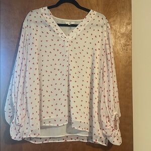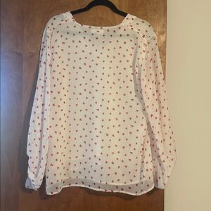 Chic white blouse featuring a playful red heart pattern. Perfect for casual outings.