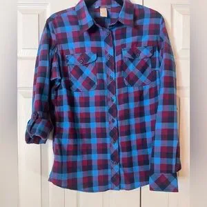 Duluth Trading Co Blue & Burgundy Plaid Button-Front Shirt