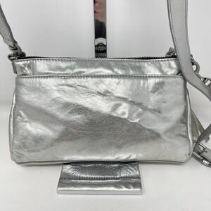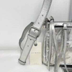 Lucky Brand Koda Crossbody Silver Metallic Topanga Leather Flashy Shiny Party
