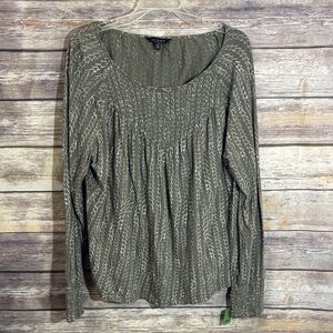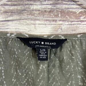 Lucky Brand Blouse Long Sleeve Top L Large Sage Green Patterned Shirred Loose