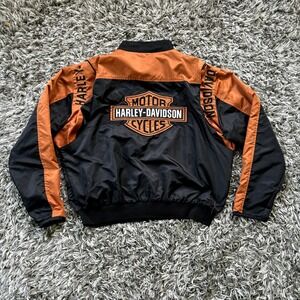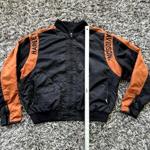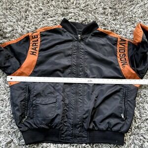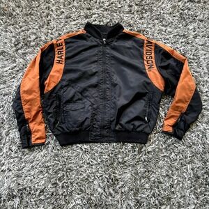 HARLEY DAVIDSON BLACK & ORANGE NYLON FULL ZIP BOMBER JACKET MEN'S SIZE XL