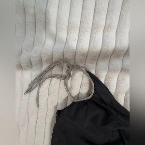 STAUD Black One-Shoulder Evening Gown with Rhinestone Halter