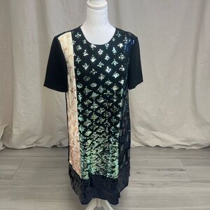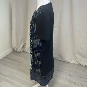 Like new dress t-shirt style shift dress designed by Tory Burch. Dress is not heavy even with all the beading. Luxurious style and craftsmanship in the beading. A perfect updated “little black dress”.