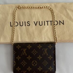 This is a rare, classic Louis Vuitton collector’s piece that’s perfect for everyday use or as a crossbody/shoulder wallet with the chain.