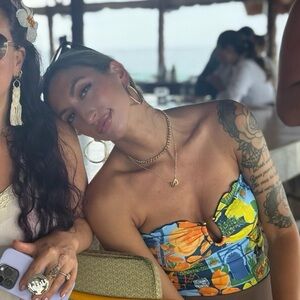 Nonna Hardware Ruffle Strapless 1 Piece Swimsuit - Blue/combo