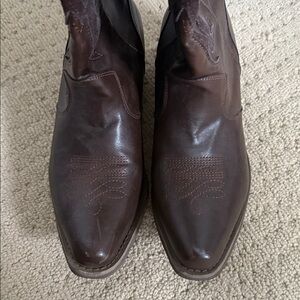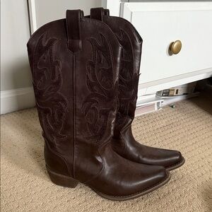 Super cute dark brown cowboy boots. Have a little bit of wear on the heels but in really good condition. Have super cute pattern on the inside, size 10 women’s