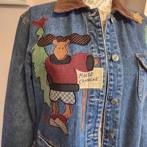 EUC Land of Loons Unique moose crossing embroidered Small jacket coat