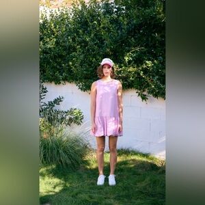 Chic pink sleeveless bubble hem dress Perfect for casual outings.