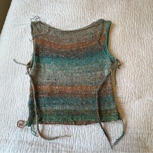 Hand knit sleeveless top made with beautiful handspun Japanese yarn.