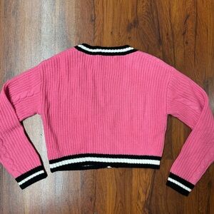 Playboy Cropped Cable Knit Varsity Cardigan Pink XS Y2K
