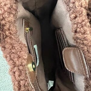 Elegant Brown Shearling Trim Mini Bag