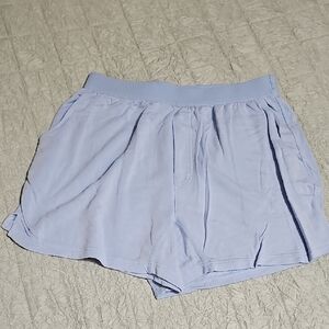 Soft pastel colorblock two-piece set in mint, pink, yellow and green. Lightweight button-front top with contrast pockets and a relaxed collar. Coordinating elastic-waist shorts with front patch pockets. Casual, playful look perfect for warm-weather outings.