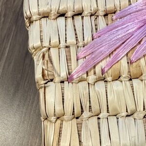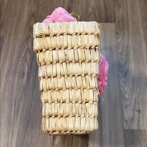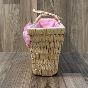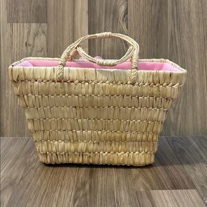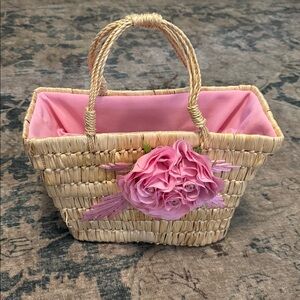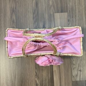 Christian Livingston Vintage Raffia Pink Fabric Roses Lined Top Handle Bag 8x10