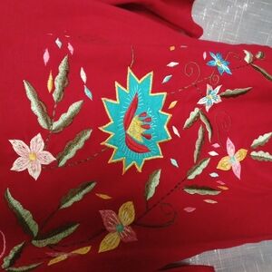 Vintage Alex Kim Red Embroidered Floral 3/4 sleeve, Size PM