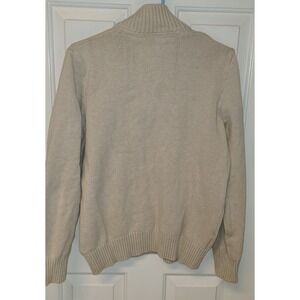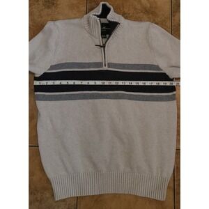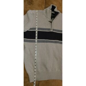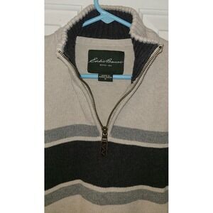 Eddie Bauer Sweater Mens M Navy Gray Striped Beige Cotton Quarter Zip Sweatshirt