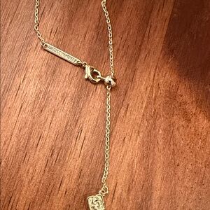 NWOT. Gold-tone chain with an emerald green stone pendant. Features a bow accent on the pendant. Sleek and feminine for everyday wear.