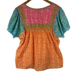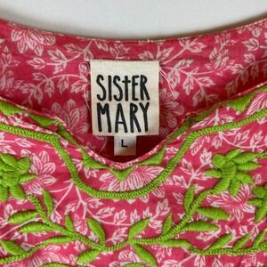 Sister Mary Patsy Embroidered Floral Patchwork Top Puff Sleeve Womens Large