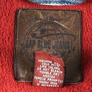 Gap Blue Jeans Jacket Mens XL Blue Denim T-Bird Patch Lined Bomber Workwear