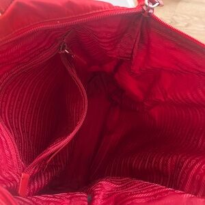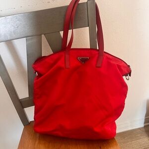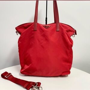 Prada Red Nylon Tote with Leather Straps and Detachable Crossbody