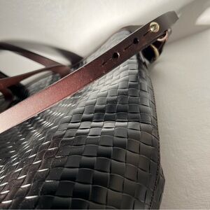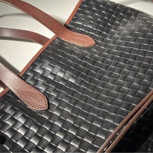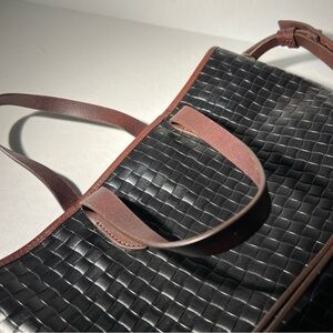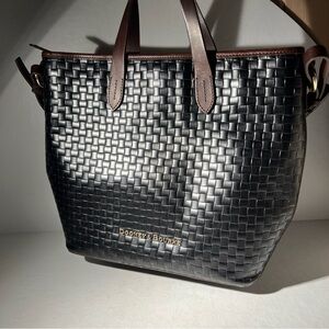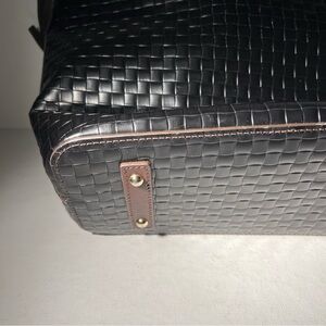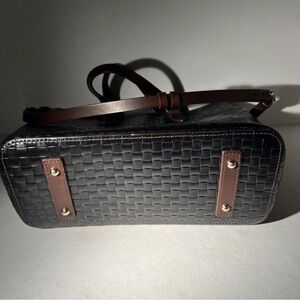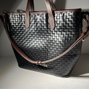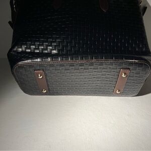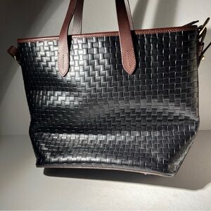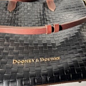 Dooney & Bourke Woven Leather Tote Black Brown Trim Shoulder Bag