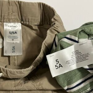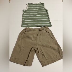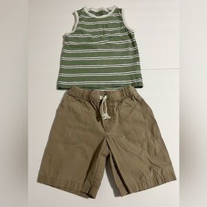 Carter’s Boys 2-Piece Outfit Set Size 5 Green Striped Tank Top & Khaki Shorts