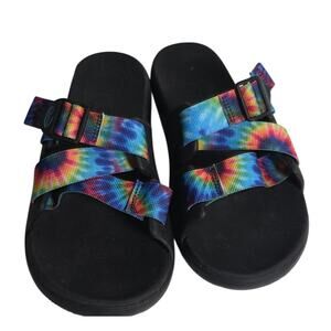 Women's 9 Chaco Chillos Slide Sandals Rainbow tie-dye Loungewear Casual Boho