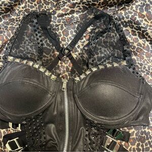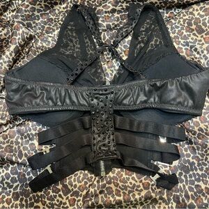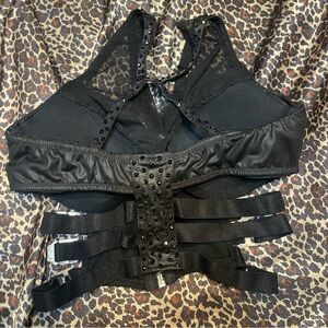 Studded Black Rhinestone Bustier Buckle Crop Top