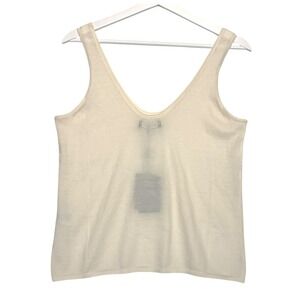 Naadam Fancy Cashmere Knit Tank White V-Neck Sleeveless Top Size Small