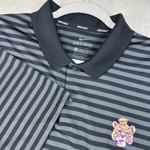 Nike Golf LSU Tigers Polo Mens XL Black Grey Striped Dri-FIT 891853-010