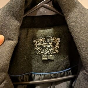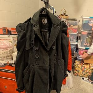 Sequin Hearts Black Double-Breasted Pea Coat