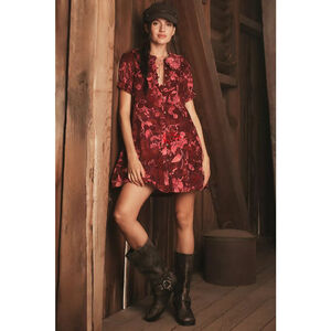 Pilcro Anthropologie Keira Corduroy Mini Dress. Shades of pink floral design. Puff sleeves. Collared. Button closure down length of dress. Womens Small. Brand new with partial tag.