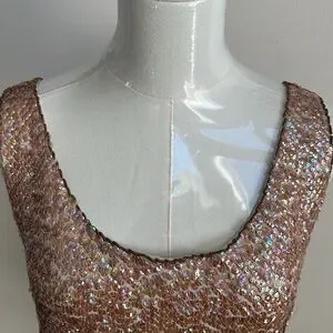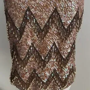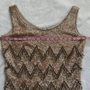 Vintage Women’s Beautiful Hand Beaded Sequins Sleeveless Top 100% Wool Lined