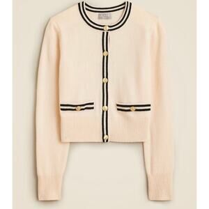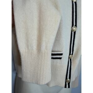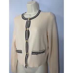 J. Crew Cashmere Sweater Lady Jacket Cardigan with Contrast Trim Sz M Cream