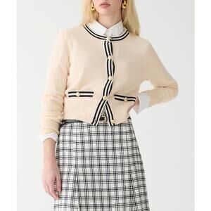 J. Crew Cashmere Sweater Lady Jacket Cardigan with Contrast Trim