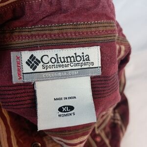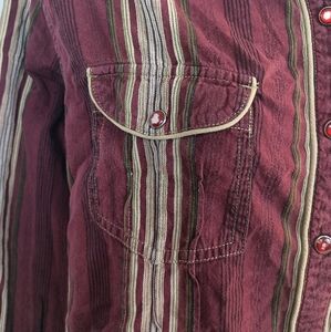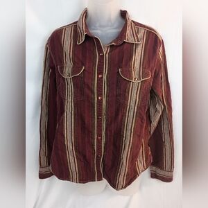 COLUMBIA coastal cowgirl western vintage Striped Burgundy Button-Up Shirt siz xl