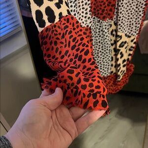 Umgee Red, Black, Cream Animal Print Patchwork Blouse
