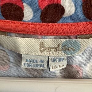 Darling v-neck dotted dress from Boden with cute embroidered detailing around the neckline. Size 6 PETITE and in great preowned condition; no visible flaws.