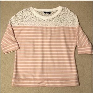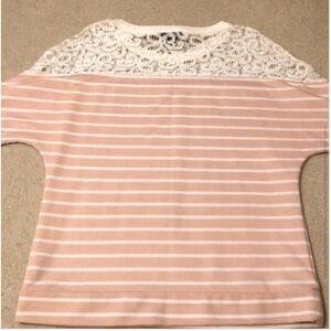 Pretty lace sweatshirt with 3/4 length sleeves. Dress it up or Dow.