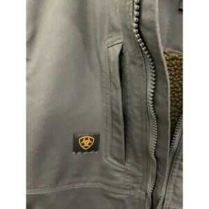 The Ariat Rebar Men's Work Vest is a durable and stylish outerwear piece perfect for various occasions such as travel, casual outings, and workwear. Made with a sturdy cotton canvas fabric and lined with cozy fleece insulation, this vest is ideal for outdoor activities in the fall season. Featuring a full zip closure, multiple pockets, and a logo accent, this vest offers both functionality and style. Designed for men of XL size and in a solid gray color, this vest from the Ariat Rebar line is a reliable choice for those who enjoy walking, hunting, or hiking in the great outdoors.