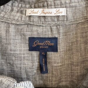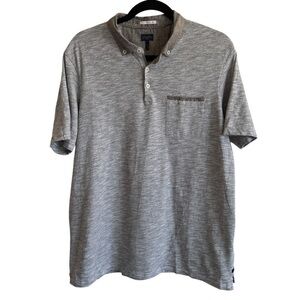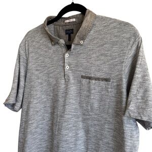 Heathered gray polo shirt from Good Man Brand with a contrast collar and pocket. Size XL and in great preowned condition; no visible flaws.