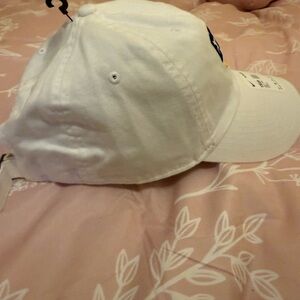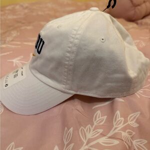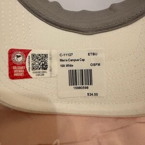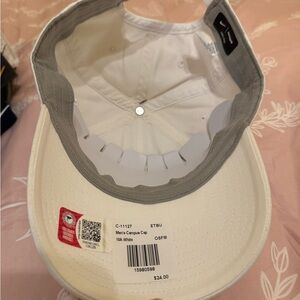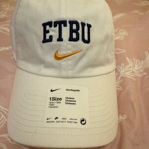 White Nike cap with ETBU embroidery. Features a gold swoosh. Unisex style.