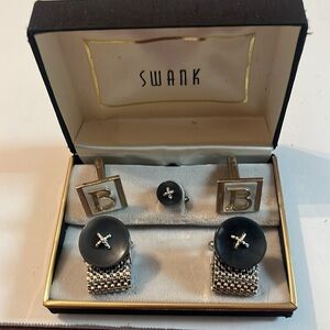 Vintage Swank Cufflinks B Monogram 5 piece set Black Silver Rare