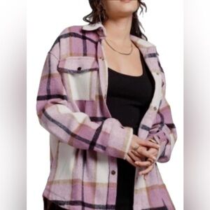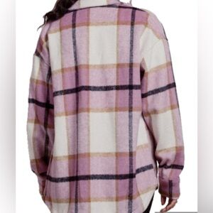 BAILEY ROSE OVERSIDE PLAID Shacket PINK & CREAM– SIZE L